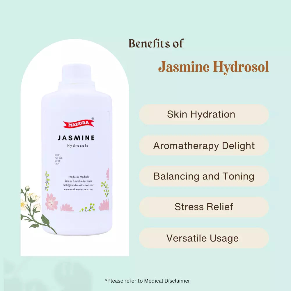 Skin Hydration and Nourishment: Hydrosol Jasmine acts as a gentle and effective hydrating mist, helping to replenish and revitalize your skin. It works as a natural humectant, attracting and retaining moisture for a radiant and supple complexion.